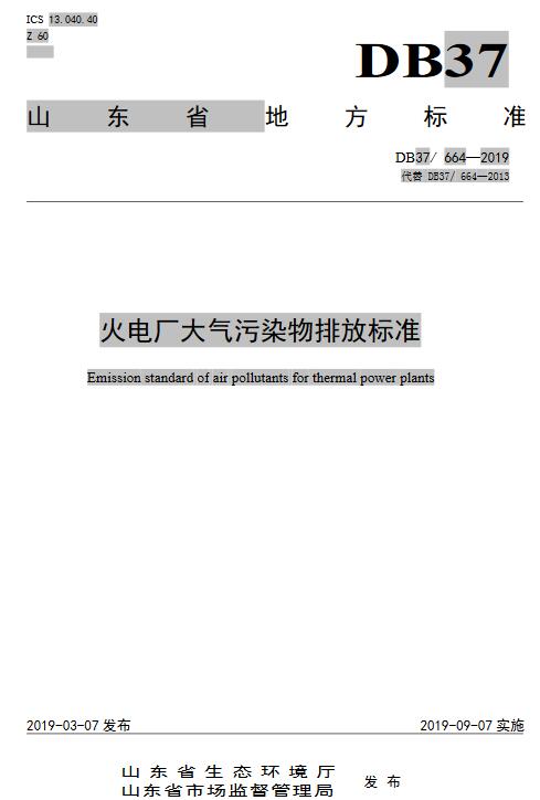 日前,山東印發《火電廠大氣污染物排放標準(DB37/ 664—2019代替DB37/ 664—2013)》。標準將于2019年9月7日實施。