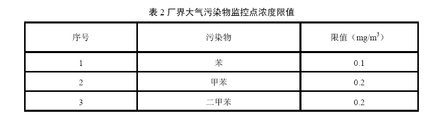 4.2.2廠界大氣污染物監控點濃度限值 廠界大氣污染物監控點污染物濃度限值應符合表2規定。