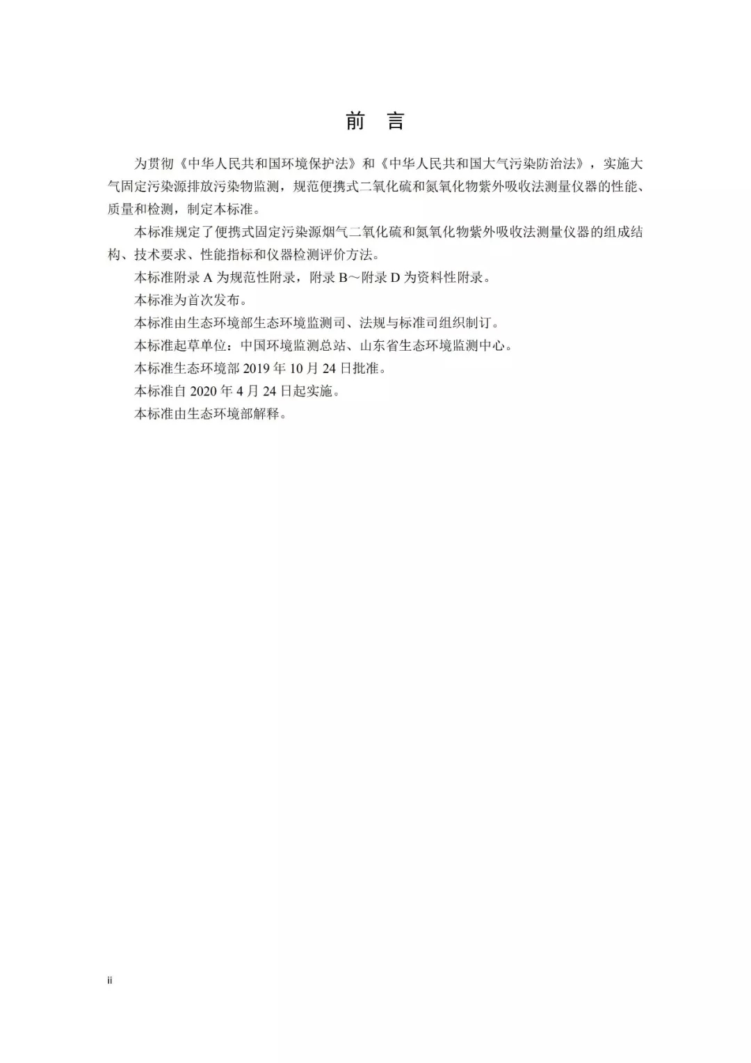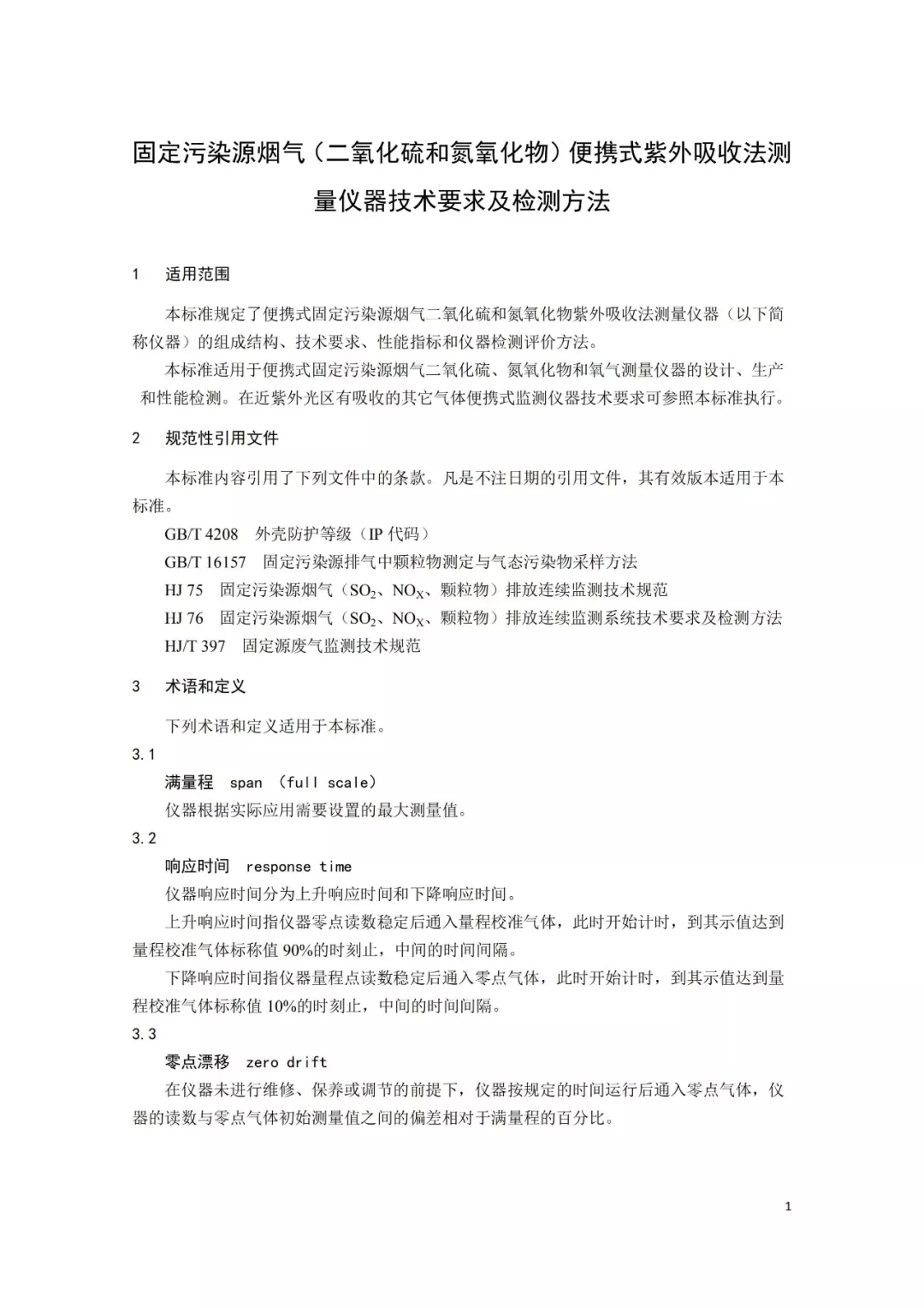2020-04-24實施|HJ 1045-2019固定污染源煙氣(二氧化硫和氮氧化物)便攜式紫外吸收法測量儀器技術要求及檢測方法
