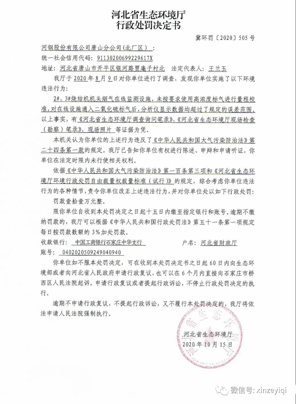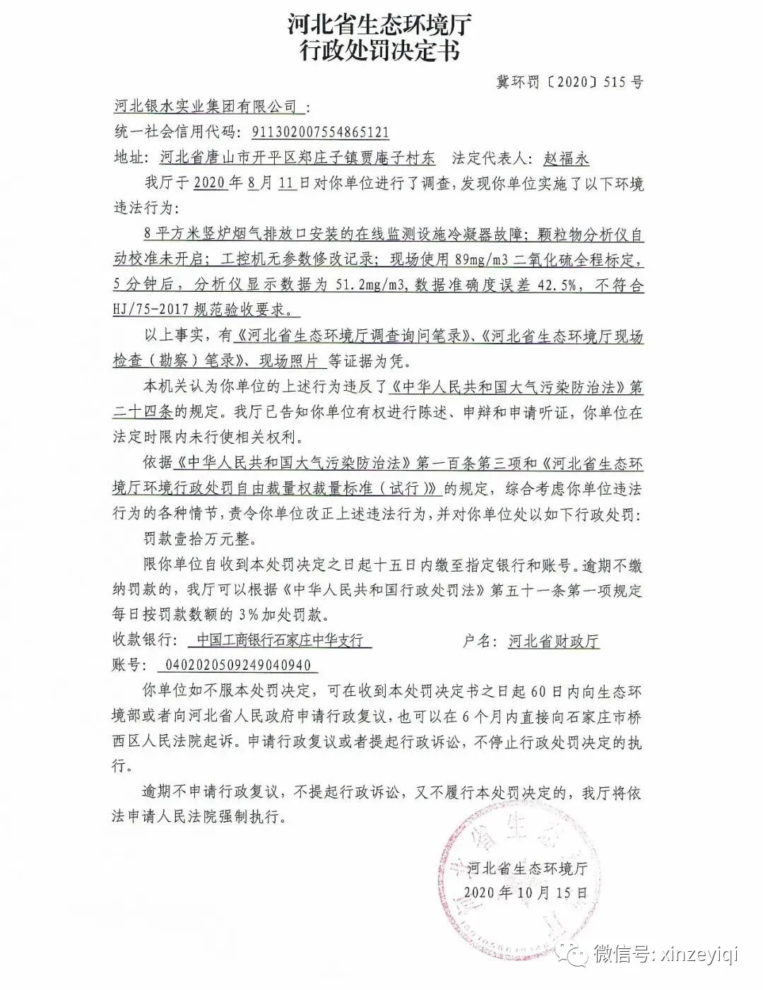 近日,河北省生態(tài)環(huán)境廳公開了2020年執(zhí)法檢查中發(fā)現(xiàn)的幾起關(guān)于在線監(jiān)測行政處罰決定書,從處罰決定書中看出多數(shù)是由于CEMS校準(zhǔn)或通標(biāo)氣測試不滿足技術(shù)指標(biāo)要求,其中二氧化硫全程通標(biāo)氣測試不滿足要求的情況尤為突出,以下是河北省生態(tài)環(huán)境廳對相關(guān)企業(yè)的行政處罰決定書。